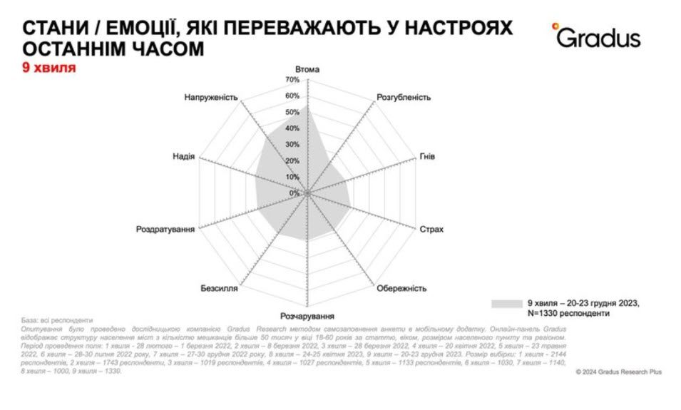 Наприкінці 2023 року дослідницька компанія Gradus Research провела дев’яту хвилю опитування у межах проєкту «Градус суспільства під час війни»