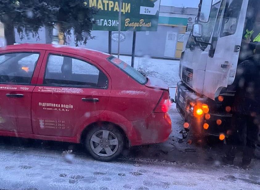 Сьогодні, 19 січня, ожеледиця почала збирати “врожай” у Дрогобичі на вулиці Самбірська. Тут не встигли розминутись легковий автомобіль з вантажівкою, а якщо бути точнішим, то ваговик в’їхав у “зад” легковику.