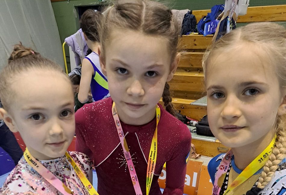Соломчак Сабріна виборола 1 місце, а Осадча Соломія – 3 місце серед спортсменів до 12 років у стрибках на акробатичній доріжці.