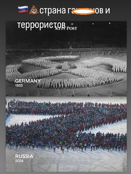 На фотоколажі, який оприлюднив український вінгер, наводиться порівняння нинішньої російської федерації із фашистською Німеччиною часів Адольфа Гітлера.
