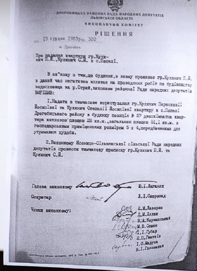 Впродовж 1984-1992 рр. у громадян не питали згоди. Передбачена компенсація за майно, як часто, нажаль, буває в таких випадках, була розділена недоброчесно. Селяни повстали перед вибором: перебратися в с.Попелі, де будувались для них будинки з господарськими будівлями абож отримати грошову компенсацію чи земельну ділянку в іншому селі і право на купівлю будівельних матеріалів для спорудження власного будинку (будівельні матеріали на той час були у великому дефіциті). Звичайно, в село Попелі змушені були переселитися люди, статки яких були дуже низькі. Здебільшого вони жили завдяки праці на землі. У Попелях було збудовані 123 квартири, як правило, вони були досить низької якості. Переселенці одразу відчули різницю проживання між рідним селом і новим місцем.