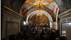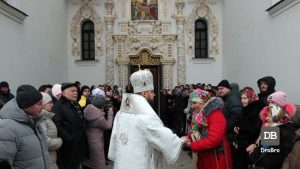 Храм був повністю заповнений. Для тих, хто не вмістився всередині, на вулиці встановили екран, на якому транслювали богослужіння. Попри мороз -8 градусів, на територію лаври прийшло багато людей.