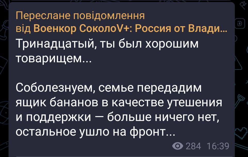 Російські військові пропагандисти повідомляють про загибель Z-окупанта Єгора Гузенка (позивний “Тринадцятий”). Відразу кілька великих Z-каналів написали про надходження відповідної інформації, передає DROBRO.