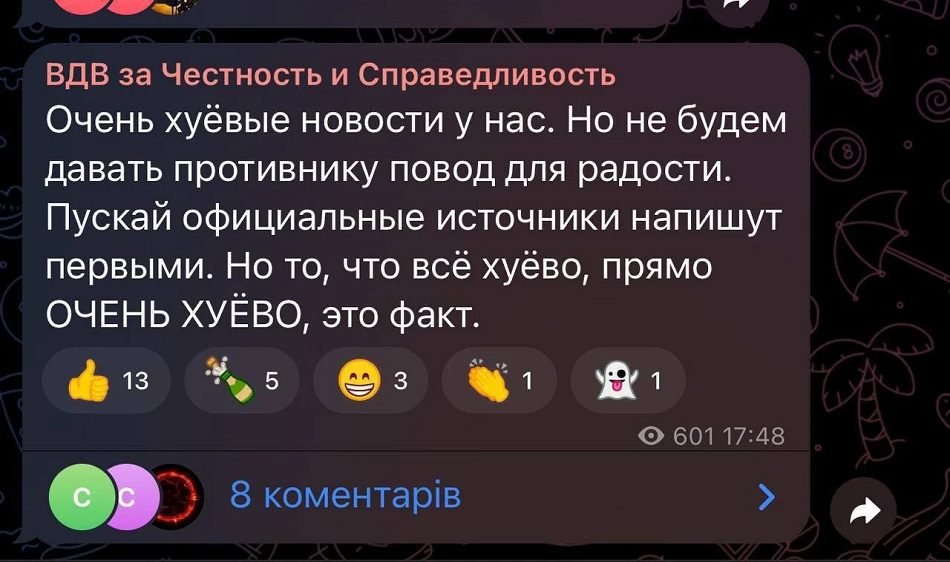 При цьому сам Гузенко, який досі активно вів свій Telegram-канал, мовчить протягом кількох годин. Останній його запис було опубліковано сьогодні вранці об 11:04: окупант зловтішався після удару російських військових дронами по готелі “Аеропорт” у Харкові.