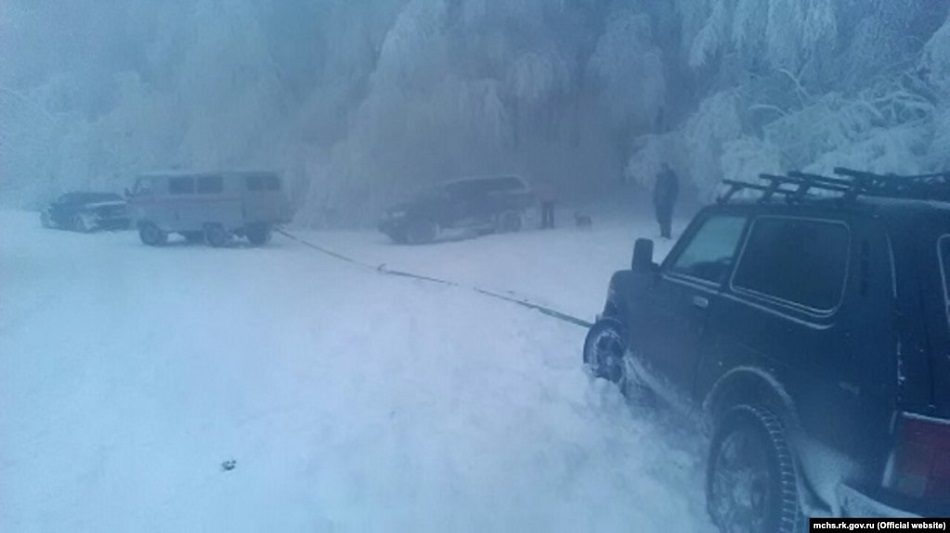 У Сакському та Чорноморському районах Криму зі снігових заметів було евакуйовано 20 автомобілів, повідомляє управління окупаційних МНС у Криму
