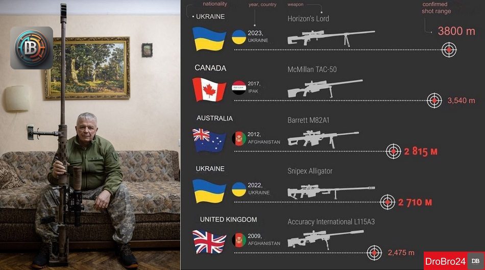 Попередній рекорд встановив канадський снайпер, він вразив ціль на відстані 3540 метрів.