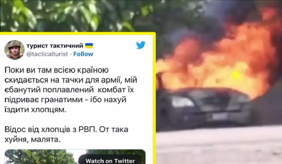 “Поки ви там всією країною скидаєтеся на тачки для армії, мій *бан*тий поплавлений комбат їх підриває гранатами, бо на*уй їздити хлопцям”, – підписав він свій пост.