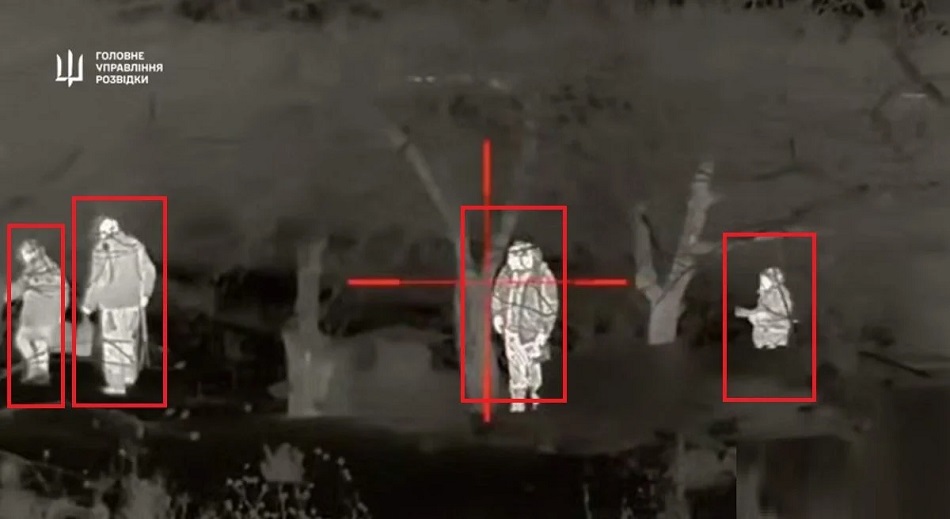 Про це повідомило ГУР у своєму офіційному Telegram-каналі, опублікувавши відповідне відео. Фрагмент відео публікує телеграм-канал DroBro24. Спецоперація була проведена в глибокому тилу ворога та спрямована на знищення окупантів та перерізання їх логістичних маршрутів. На відео знято дії снайперської пари, озброєної напівавтоматичними гвинтівками з тепловізійними прицілами. Українські бійці організували засідку на групу із чотирьох російських солдатів, розподілили цілі між собою та точною серією пострілів нейтралізували ворога.
