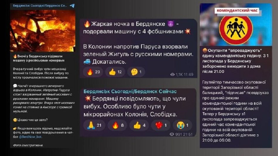23 жовтня у тимчасово окупованому Бердянську було підірвано автомобіль, в якому перебували 4 представників ФСБ рф