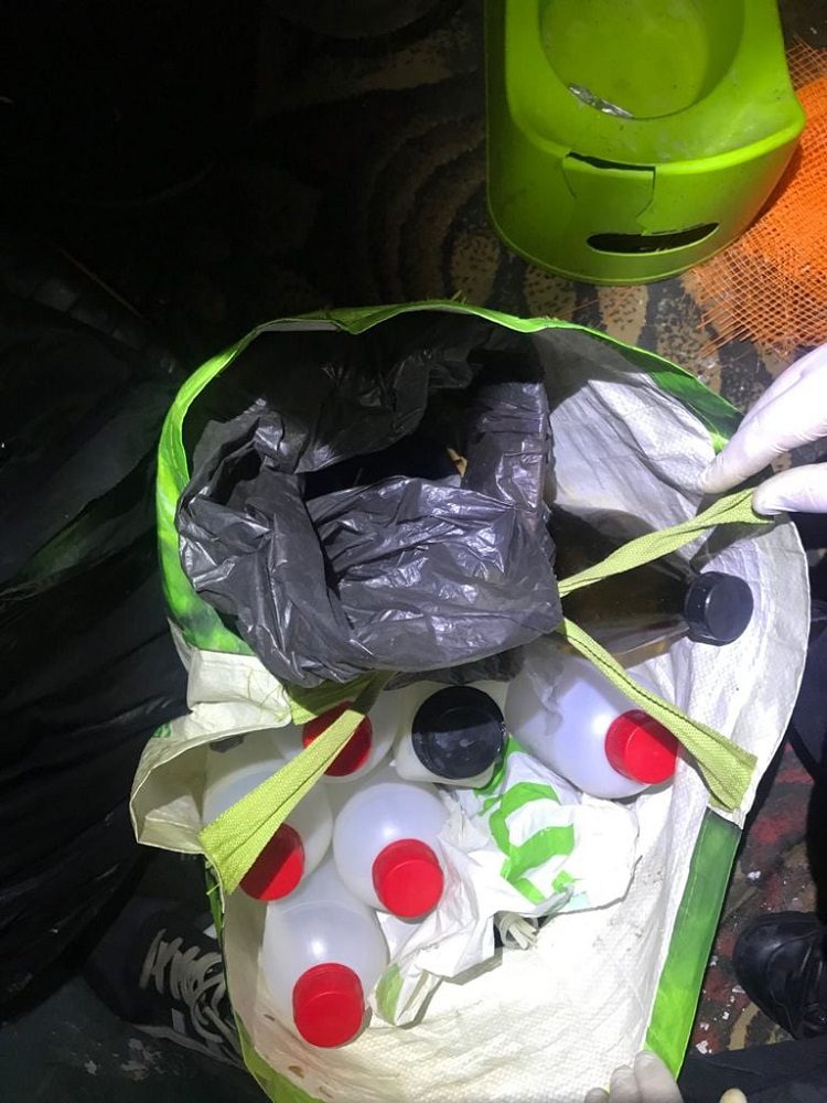 Під час санкціонованого обшуку у помешканні зловмисників правоохоронці виявили та вилучили наркотичні засоби, схожі на «амфетамін» та «канабіс», обладнання та прекурсори, за допомогою яких можна виготовляти наркотичні засоби та речовини та інші речові докази їх причетності до противправної діяльності. Усе вилучене скеровано на експертне дослідження.
