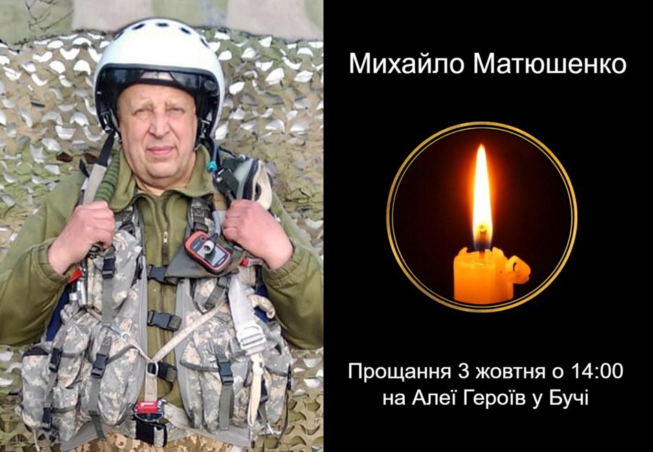 Прощання з Михайлом Матюшенком відбудеться 3 жовтня о 14:00 на Алеї Героїв у Бучі.