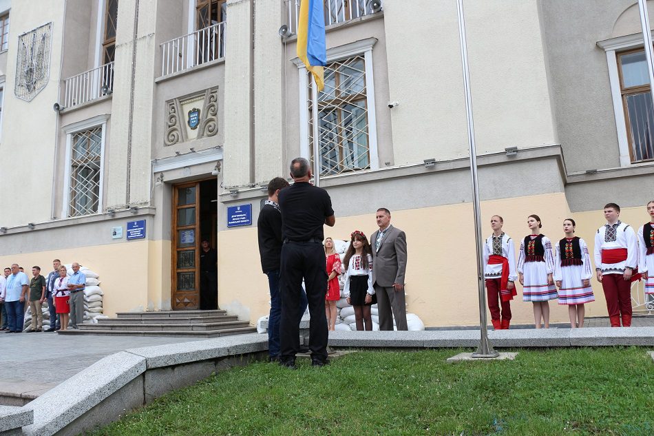 Відтак військовий оркестр виконав Гімн України та «Червону калину». Так камерно та патріотично у місті розпочали святкування Дня Державного Прапора України.