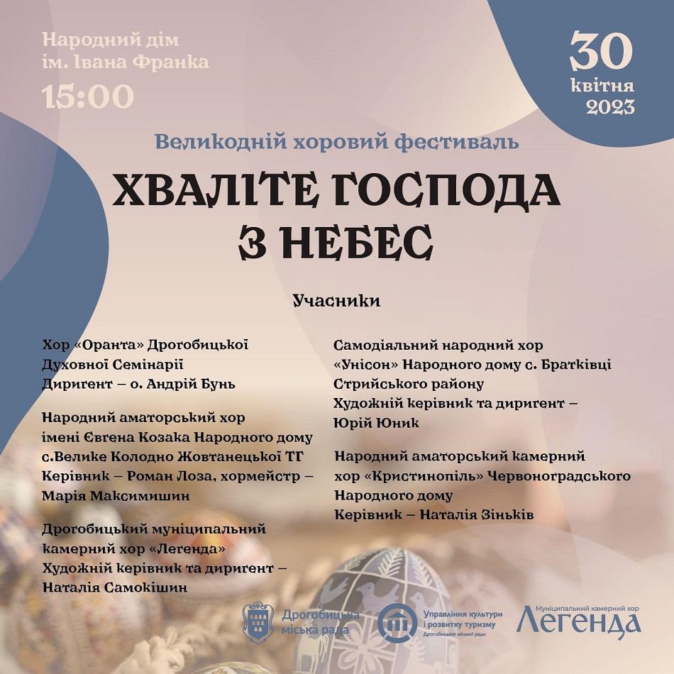Вже цієї неділі, 30 квітня, о 15:00 у приміщенні Народного дому імені Івана Франка відбудеться XXII фестиваль «Хваліте Господа з небес»
