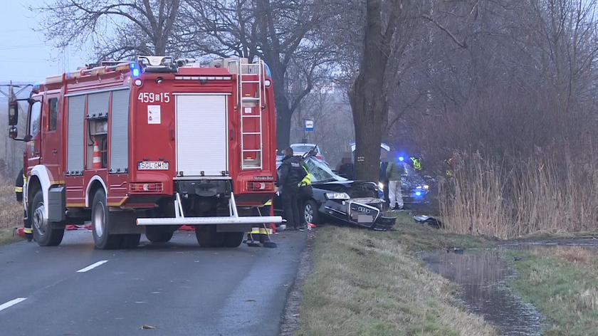 Представник місцевого відділення поліції Марек Сломський розповів, що Audi A6, за кермом якої був 40-річний водій, зіткнулася з Audi A4, який їхав з протилежного боку. Після цього водій першого авто втратив контроль над машиною, вилетів із проїжджої частини та врізався у дерево, передає DROBRO.