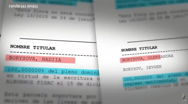 Через два місяці після розголосу інформації, що у родини Борисова з’явилась вілла в Іспанії за понад 3 мільйони євро, у його дружини – офісне приміщення на головній вулиці Марбельї, а також кілька дорогих автівок, УП повторно взяла витяги з іспанського реєстру і на маєток і на офісне приміщення.