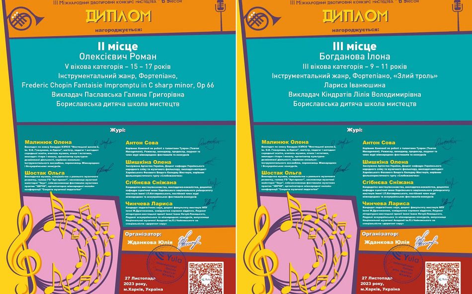 Чотири нагороди у Міжнародних конкурсах здобули вихованці Бориславської дитячої школи мистецтв